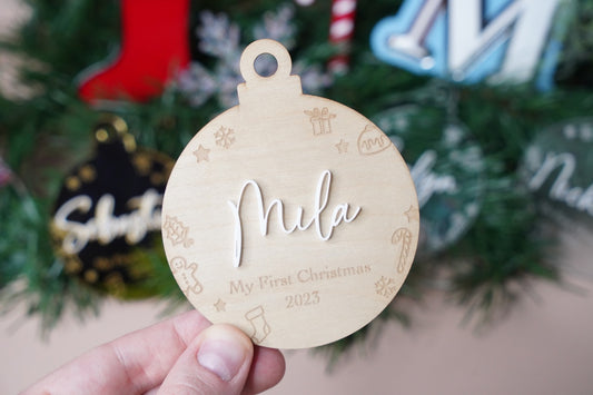 My First Christmas Bauble Ornament - Colour/Name Customisable
