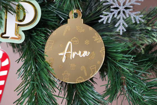 My First Christmas Festive Bauble Ornament - Colour/Name Customisable